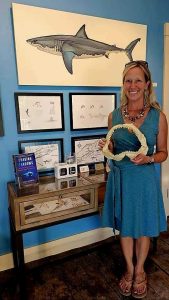 Scientific illustrator Karen Talbot, who created the illustrations and maps in the book, will be on hand to share her large painting of “Mueller,” the shark featured in chapter one of the book, and she will gladly add an original sketch of a white shark to the title page of any books purchased at the event.