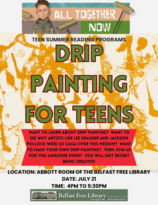 This is the second program in our Teen Summer Reading series!! Want to learn about drip painting? Want to see why artists like Lee Krasner and Jackson Pollock were so gaga over this medium? Want to make your own drip painting? Then join us for this awesome event! You will not regret being creative!