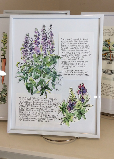Locally Grown, an exhibit of watercolor and ink illustrations with text by Rita Swidrowski, will be on display in the Kramer Gallery of the Belfast Free Library September 7th through October 7th.