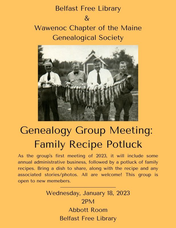 Monthly meeting of the Wawenoc Chapter of the Maine Genealogical Society. All are welcome!
