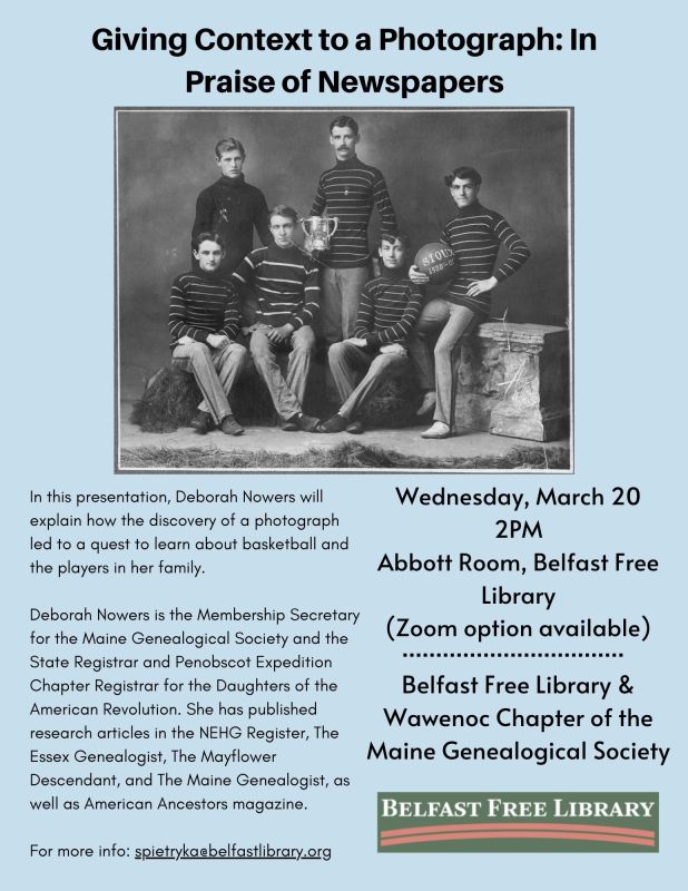 Deborah Nowers is the Membership Secretary for the Maine Genealogical Society and the State Registrar and Penobscot Expedition Chapter Registrar for the Daughters of the American Revolution. She has published research articles in the NEHG Register, The Essex Genealogist, The Mayflower Descendant, and The Maine Genealogist, as well as American Ancestors magazine.