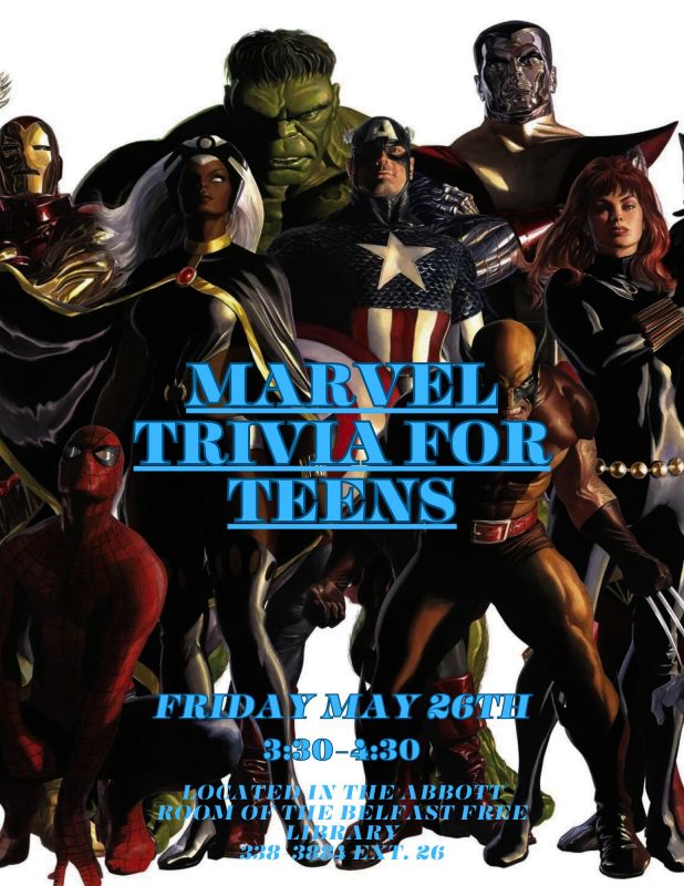 Calling all teens, 11-17 years old!!!!! Come show your skills in Marvel Trivia! Prizes and fun for everyone!!!!!