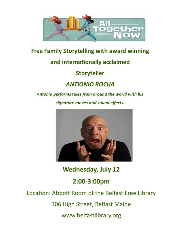 One of the most engaging and popular professional storytellers in the nation is going to be at the Belfast Free Library. Fun for the whole family.