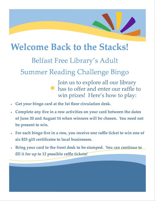 Welcome Back to the Stacks! — Belfast Free Library’s Adult Summer Reading Challenge Bingo
